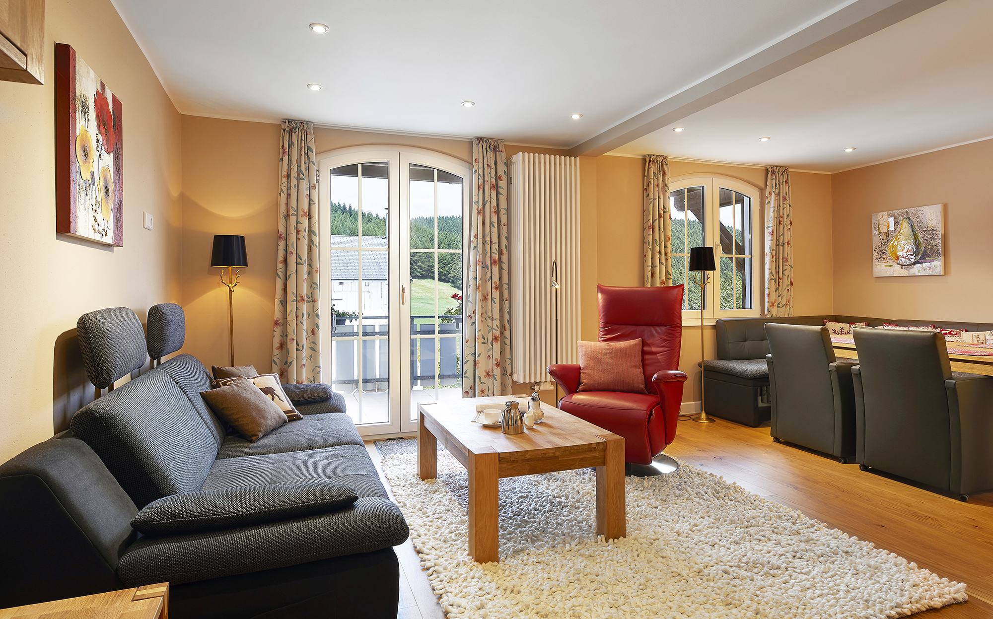 Unser großes Ferienappartement ist mit 100m² großzügig eingereichtet und hochwertig ausgestatter. Das Appartement verfügt über zwei Schlafzimmern, eine großer Küche mit Sitzecke und einem Balkon.